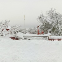 Vinter, januari 2026. Labacken, Roslagsbro hembygdsförenings hembygdsgård.
