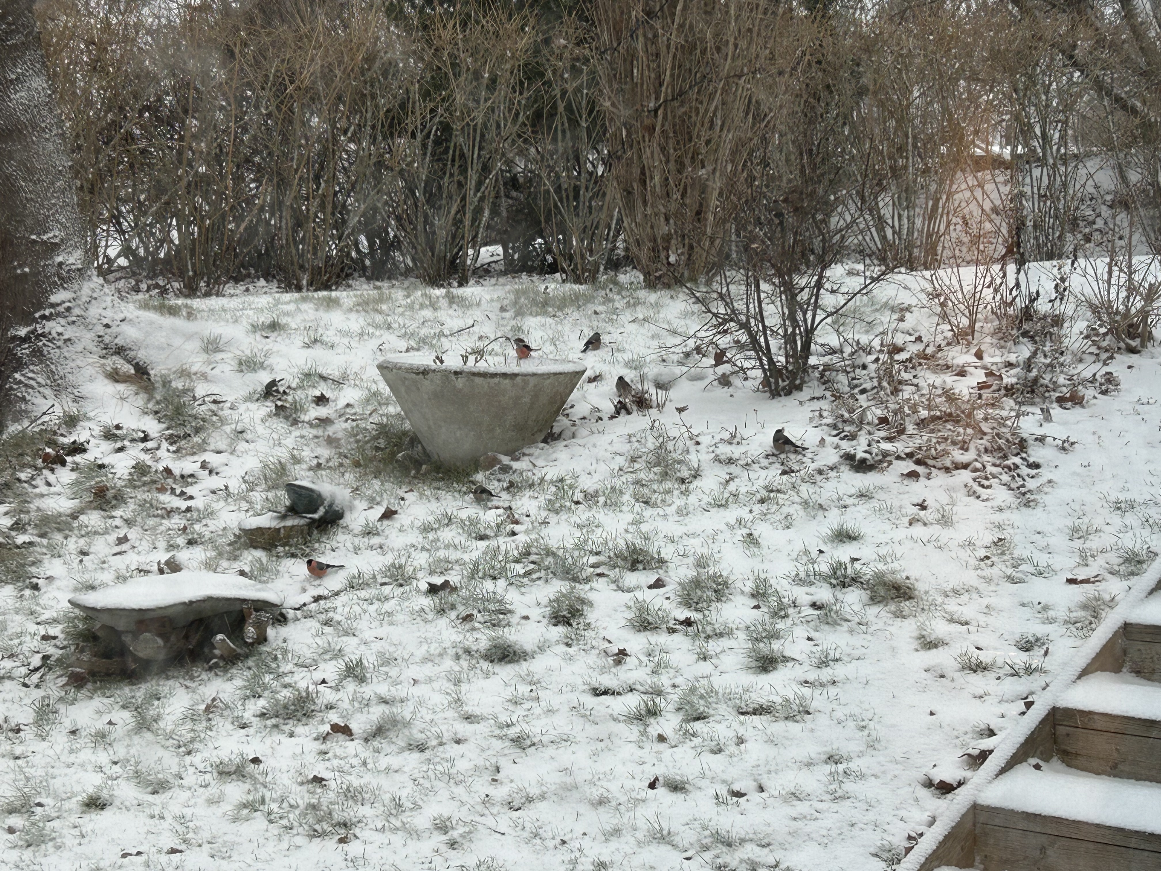 - sv Ovanligt med domherrar så tidigt på säsongen. Inga stora mängder snö ännu och inte jättekallt heller. Letar både mat o vatten.
