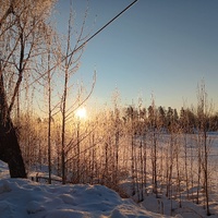 Strålande vinterväder. Härlig snömängd. Morgonsol. Frostigt. På väg till bussen (vinkområde).