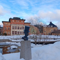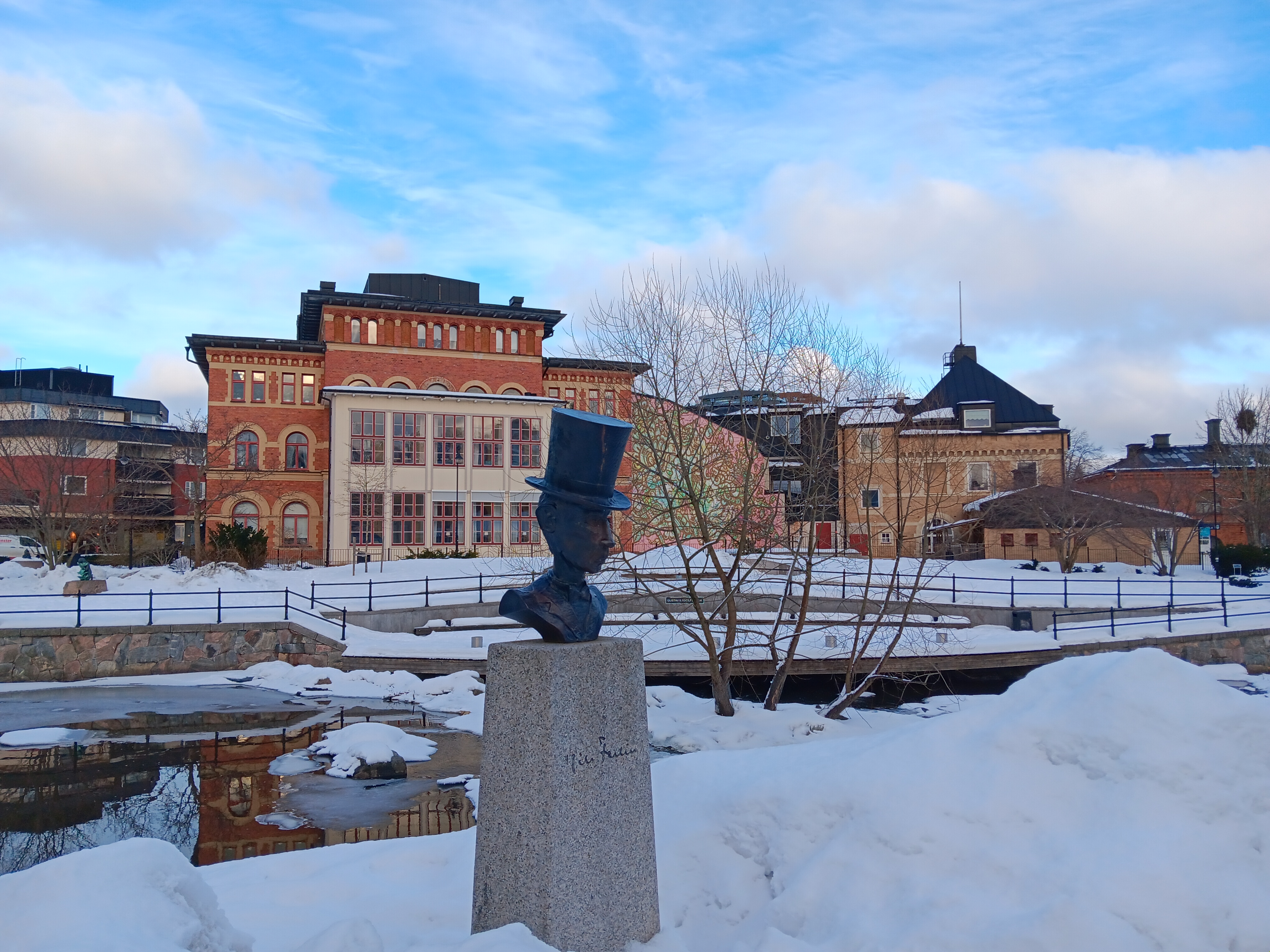 Del av Nils Ferlin i ett vintrigt Norrtälje
