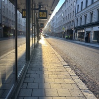 - sv Solen går upp på Humlegårdsgatan, Östermalm. Morgonpromenad till jobbet.